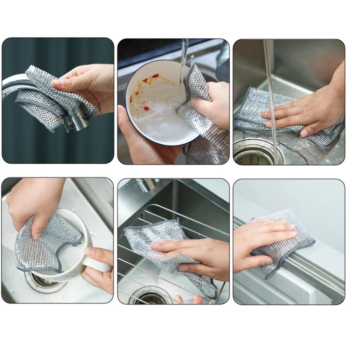 ۱ تمیز کردن آسان - حوله ظرفشویی سیمی فلزی ما انقلابی در تمیز کردن آسان ایجاد میکند. این حوله به طور خاص برای مقاومت در برابر روغن و کثیفی طراحی شده است میتوانید از آن به صورت مرطوب یا خشک استفاده کنید و تلاشهای تمیز کردن شما را بسیار کارآمدتر میکند. به علاوه، پس از استفاده هیچ اثری از آن باقی نمیماند. به لطف منافذ متراکم آن کف غنی ایجاد میکند و میتوان بارها و بارها بدون لکه یا خراب شدن از آن استفاده کرد.