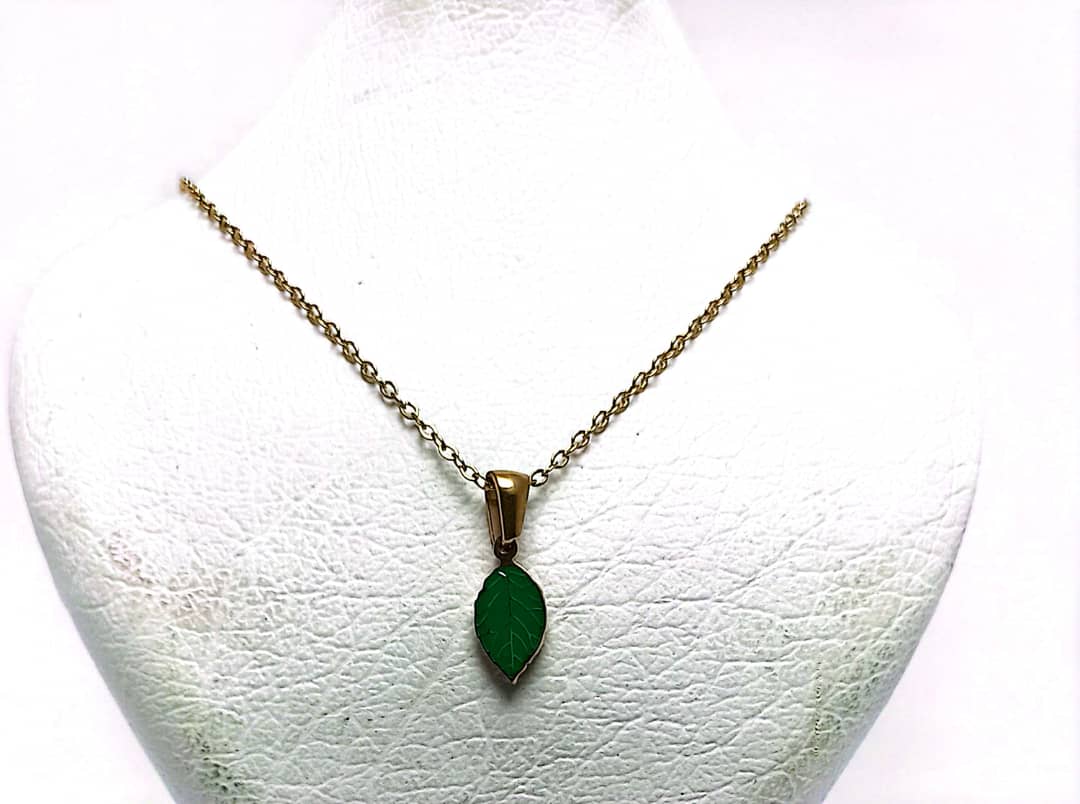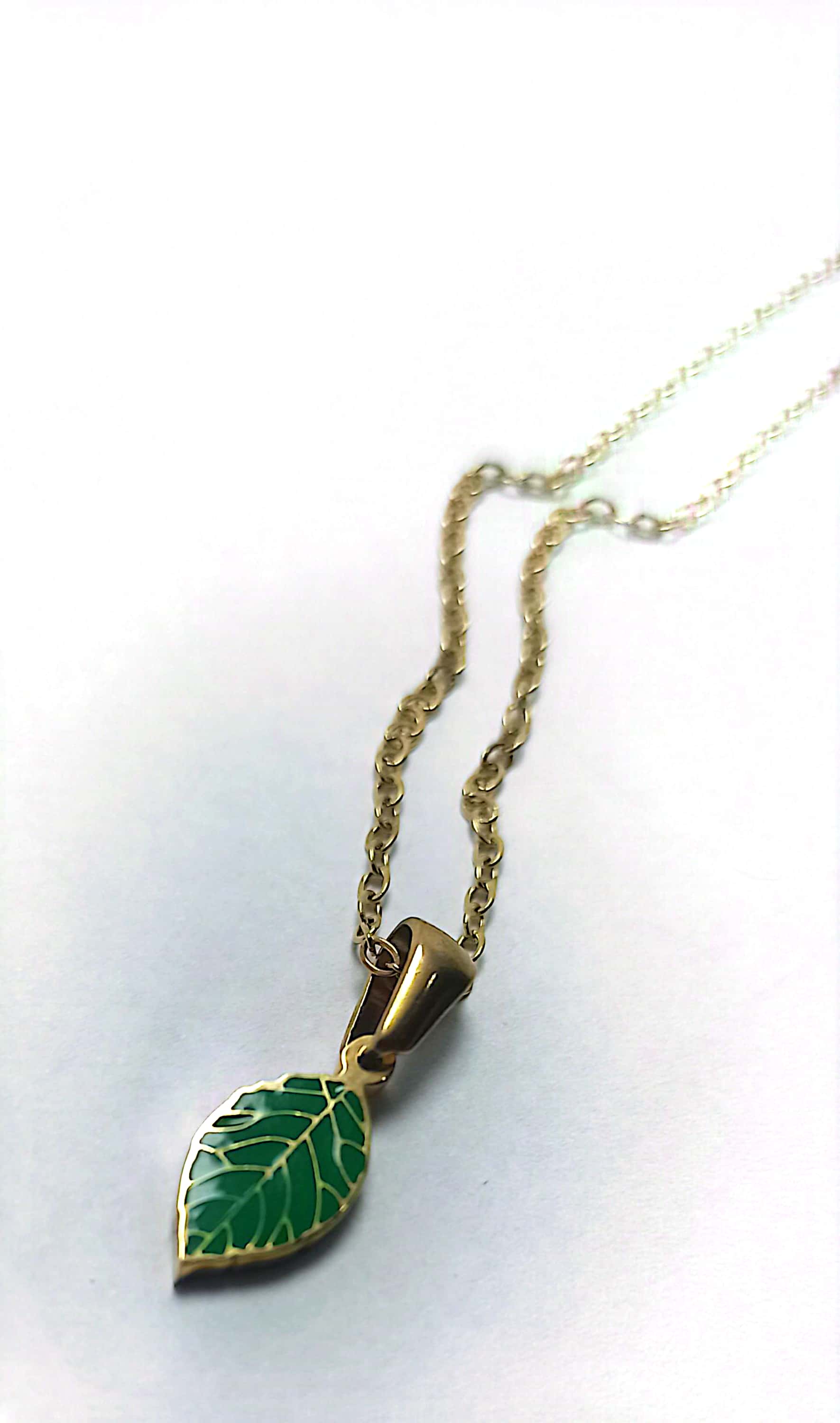 این گردنبند خاص با طراحی برگ زیبا و رنگ سبز چشمنواز، انتخابی عالی برای کسانی است که به دنبال جواهراتی با الهام از طبیعت هستند. بدنهی گردنبند از فلز طلایی ساخته شده و ظاهری شیک و بادوام دارد. این گردنبند میتواند بهعنوان هدیهای خاص و منحصر به فرد برای عزیزانتان باشد یا به استایل روزمره شما رنگ و زندگی ببخشد.