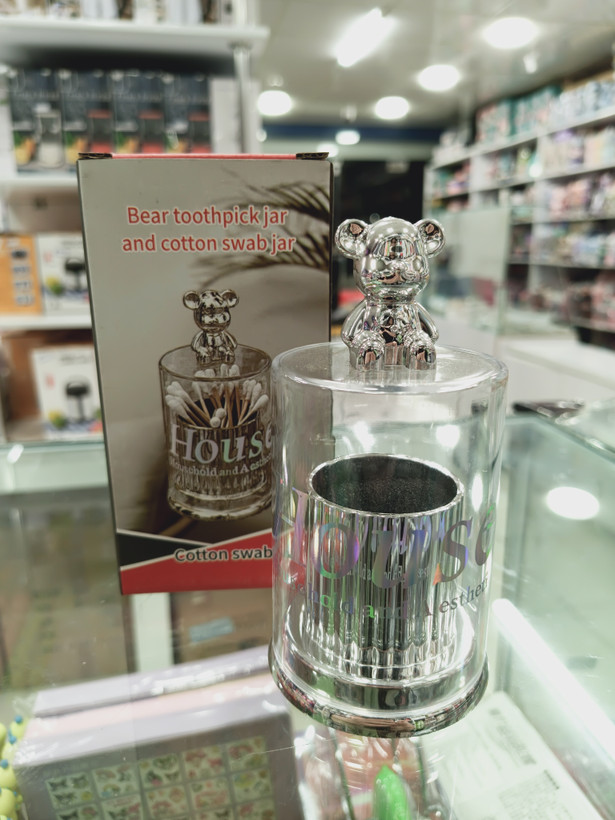 مورد مناسب جهت نگهداری از لوازم آرایشی روی میز، استند و نگهدارنده پد آرایشی . گوش پاک کن . خلال دندان و… طرح خرسی میباشد.