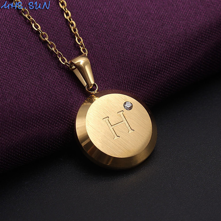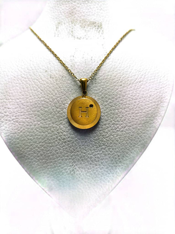 گردنبند طلایی با آویز دایرهای، حکاکی حرف H و نگین ظریف براق. طراحی شیک و مینیمال، مناسب استفاده روزانه و هدیهای خاص برای عزیزان.