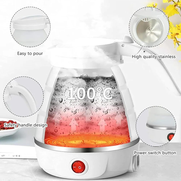 کتری برقی از طراحی تاشوی خلاقانهای بهره میبرد، اندازه تا شده آن تنها ۷.۲x۵.۲x۳.۸ اینچ است، به راحتی در چمدان و کوله پشتی شما جا میشود، هنگام بستهبندی فضای زیادی را ذخیره میکند و حمل آن آسان است.