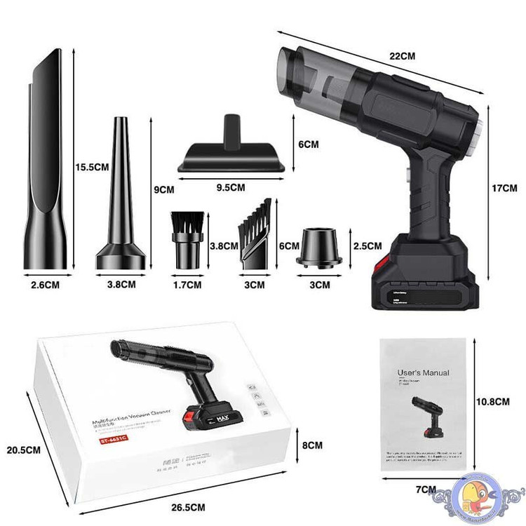 4. **لوازم جانبی متنوع:** این جاروبرقی دارای انواع سریهای مختلف است که برای نظافت کامل و دسترسی به همه نقاط خودرو طراحی شدهاند، از جمله سریهای مخصوص تمیز کردن صندلیها، کف خودرو، و نقاط دشوار دسترسی.