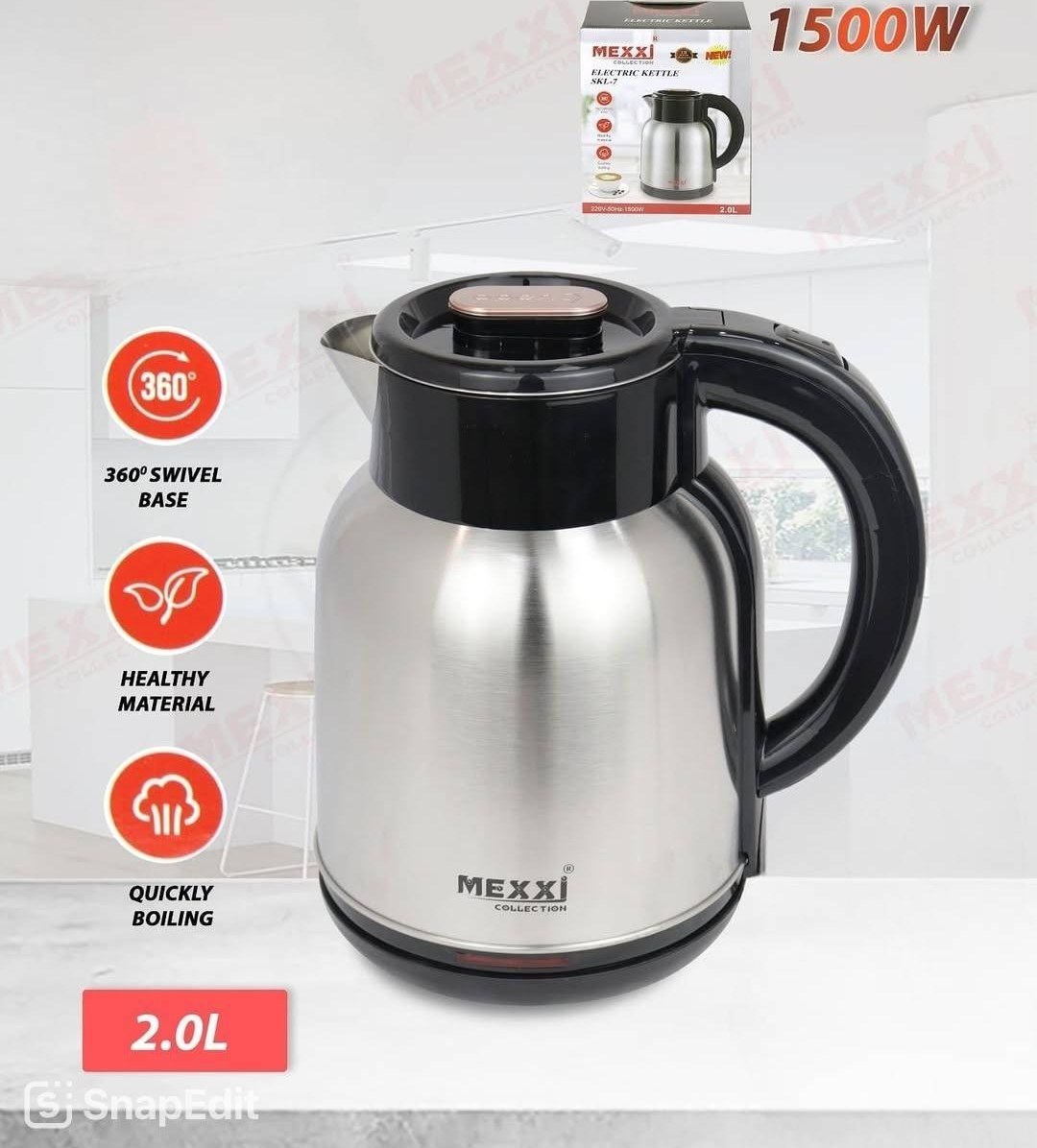 کتری برقی مکسی مدل Sk_7 یکی از محصولات خاص و با طراحی بی نظیز از شرکت مکسی می باشد که در کنار کیفیت و کارایی جز محصولات مقرورن و به صرفه برای خرید و استفاده روزانه در خانه ، محل کار ، ادارات و ... می باشد .جنس بدنه کتری برقی تمام استیل و از نوع استیل می باشد .دارای ظرفیت 2 لیتر با توان مصرفی 1500 وات قادر به جوش آوردن آب در کمترین زمان ممکن و قطع کن خودکار دارد که بصورت خودکار پس از جوش آمدن آب خاموش می شود.