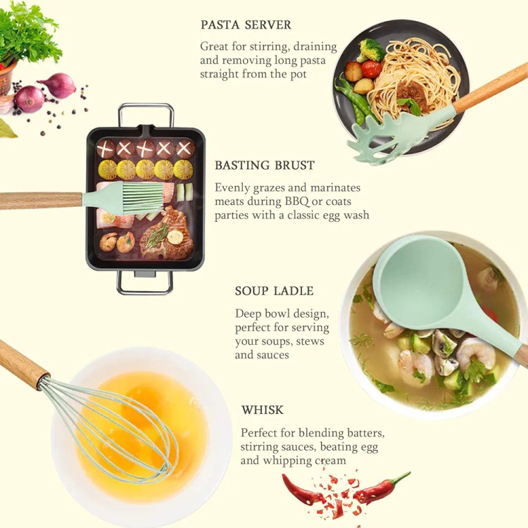 مجموعه چند منظوره: این مجموعه ظروف ۱۲ تکه شامل یک ترنر شیاردار، قاشق جامد، قاشق شیاردار، سرویس اسپاگتی، ملاقه، همزن، انبر، له کننده سیب زمینی و ۴ نگهدارنده ظروف است.