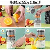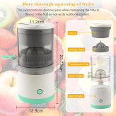 آبمیوهگیری برقی از طریق USB قابل شارژ است، پس از شارژ کامل، میتوان آن را در هر مکانی، صرف نظر از منبع تغذیه، استفاده کرد. این آبمیوهگیری قابل حمل، نوشیدن آبمیوه تازه را هنگام سفر، اردو زدن یا پیک نیک آسان میکند. (توصیه میشود قبل از استفاده، از داشتن برق کافی برای آبمیوهگیری مطمئن شوید)